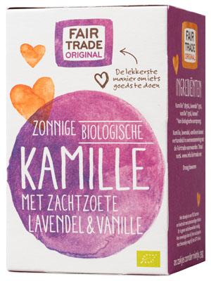 Deze geurige kamille komt helemaal tot haar recht in combinatie met de lavendel, vanille en kaneel. De smaken en kleuren vullen elkaar aan tot een prachtig boeket.