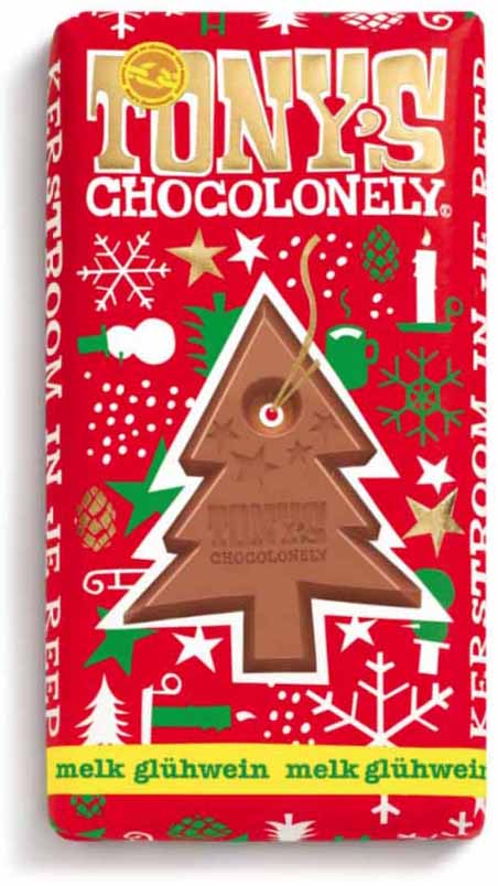 Bij Tony’s houden ze wel van ’n feestje. Daarom voor in, of ònder je kerstboom: ’n kerstboom in je reep! Met extra veel chocolade eromheen, waar je ’m uit kan breken. We kunnen niet garanderen dat hij lang zal hangen, want de melkchocolade met glühwein is echt verukkelijk. En ook de pure chocolade met stukjes candy cane met pepermuntsmaak is zo lekker dat je ‘m misschien wel meteen wilt opeten. All I want for Christmas is joehoe..!