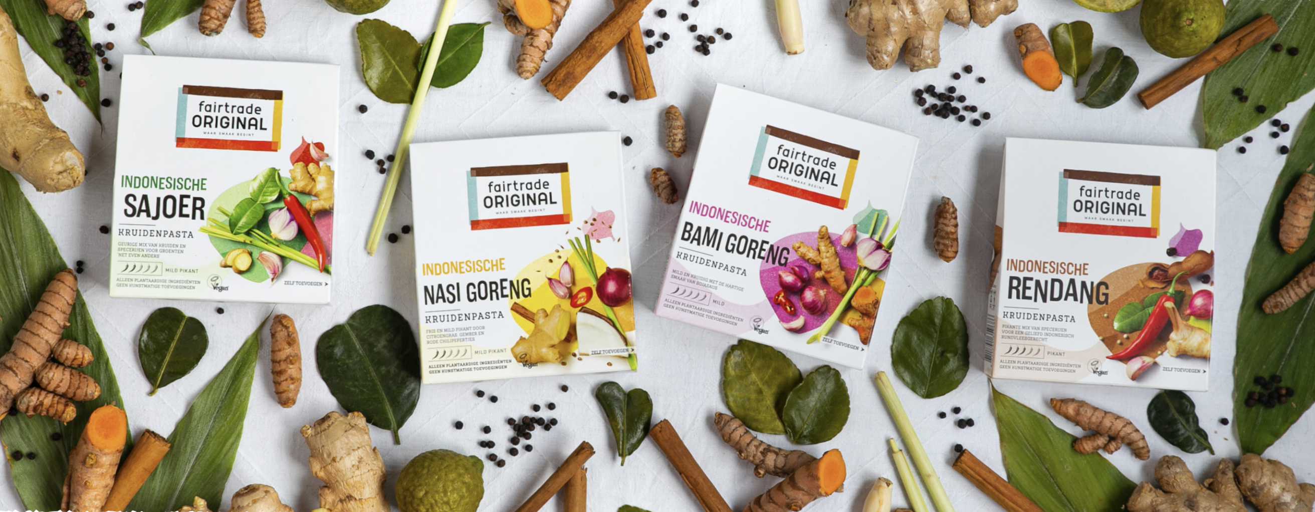 Trots stellen we ze aan je voor: onze vier nieuwe Indonesische kruidenpasta’s. Met deze prachtige basis voor jouw gerechten voeg je een aantal verse ingrediënten toe en zit je zo aan tafel. Op het eerste oog lijken deze Indonesische klassiekers niets nieuws. Maar deze bumbu’s (Indonesisch voor kruidenpasta’s) zijn volledig plantaardig en bevatten geen kunstmatige toevoegingen en geen palmolie. Dat is een unieke combinatie in het schap. En niet te vergeten: ze zijn natuurlijk Fairtrade!