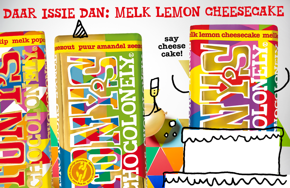 Gelukkig is er nu speciaal voor jou deze limited edition feestreep, in de smaak Melk lemon cheesecake. Om je te bedanken voor je vriendschap en voor alle Tony’s Chocolonely die je eet, omdat je zo de strijd voor een 100% slaafvrije chocoladewereld steunt.