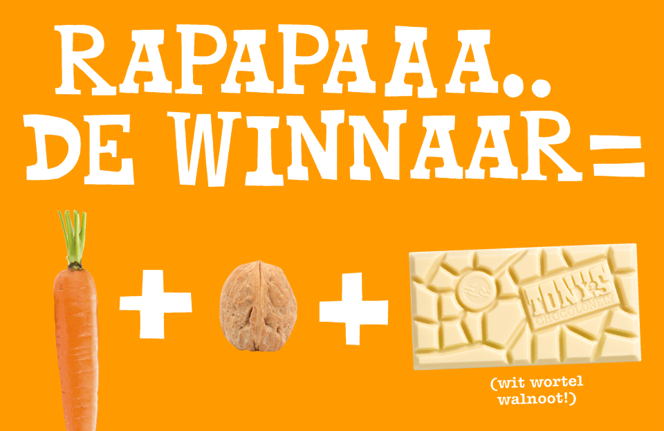 De verkiezing van de favoriete Limited Editions reep 2016 is gewonnen door de Wit Wortel Walnoot. Dus in ’t nieuwe jaar kun je onbeperkt van deze ‘icing on the carrot cake’ reep genieten!