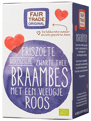 Zwarte thee* (88%), natuurlijke aroma’s, stukjes braambes* (1%), rozenblaadjes* (1%).