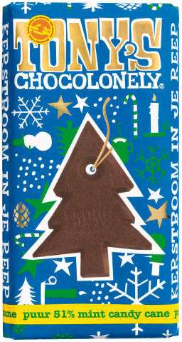 Bij Tony’s houden ze wel van ’n feestje. Daarom voor in, of ònder je kerstboom: ’n kerstboom in je reep! Met extra veel chocolade eromheen, waar je ’m uit kan breken. We kunnen niet garanderen dat hij lang zal hangen, want de melkchocolade met glühwein is echt verukkelijk. En ook de pure chocolade met stukjes candy cane met pepermuntsmaak is zo lekker dat je ‘m misschien wel meteen wilt opeten. All I want for Christmas is joehoe..!