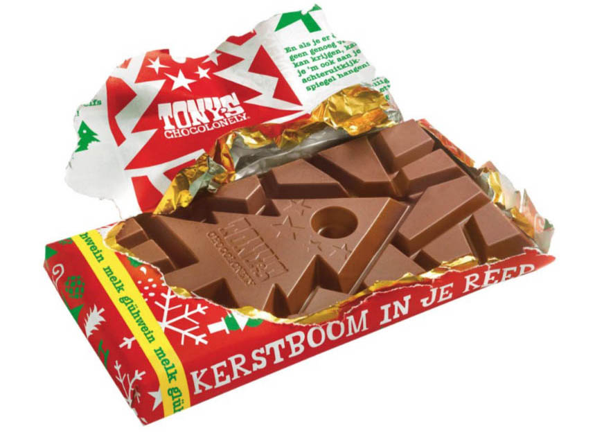 Ook dit jaar komt Tony’s Chocolonely weer met speciale Kerstrepen. De repen zijn voorzien van een handig gat, zodat je ze eventueel in een kerstboom zou kunnen hangen.