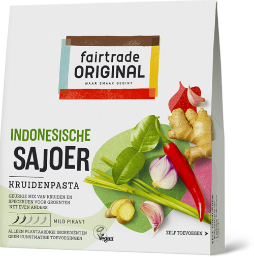 Trots stellen we ze aan je voor: onze vier nieuwe Indonesische kruidenpasta’s. Met deze prachtige basis voor jouw gerechten voeg je een aantal verse ingrediënten toe en zit je zo aan tafel. Op het eerste oog lijken deze Indonesische klassiekers niets nieuws. Maar deze bumbu’s (Indonesisch voor kruidenpasta’s) zijn volledig plantaardig en bevatten geen kunstmatige toevoegingen en geen palmolie. Dat is een unieke combinatie in het schap. En niet te vergeten: ze zijn natuurlijk Fairtrade!