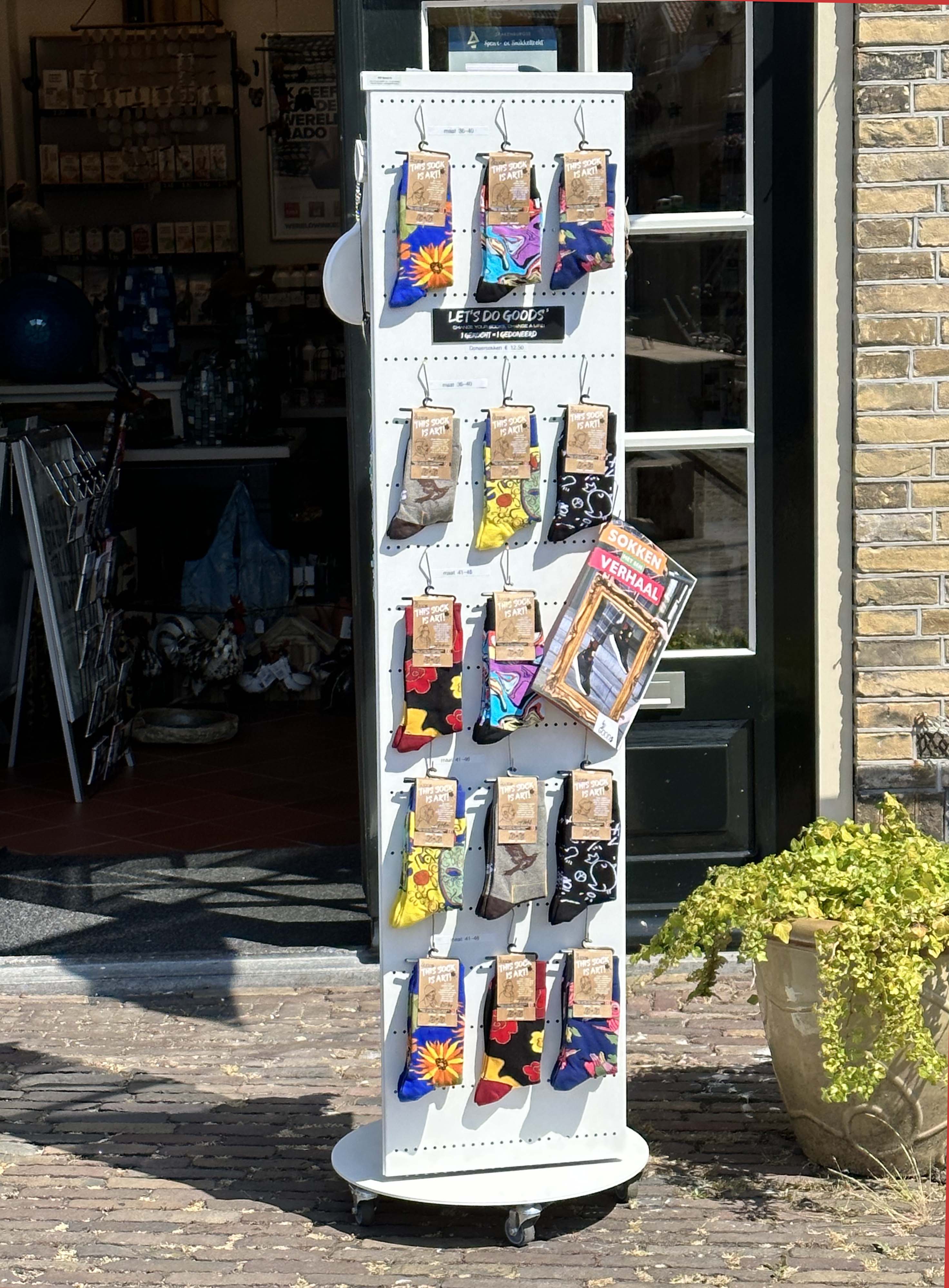 Het zijn fijne sokken en de vrijwilligers van de Wereldwinkel kunnen jullie de achtergrondverhalen vertellen van die ontwerpers. Zo’n cadeau met zo’n bijzonder verhaal gun je toch iedere vader!