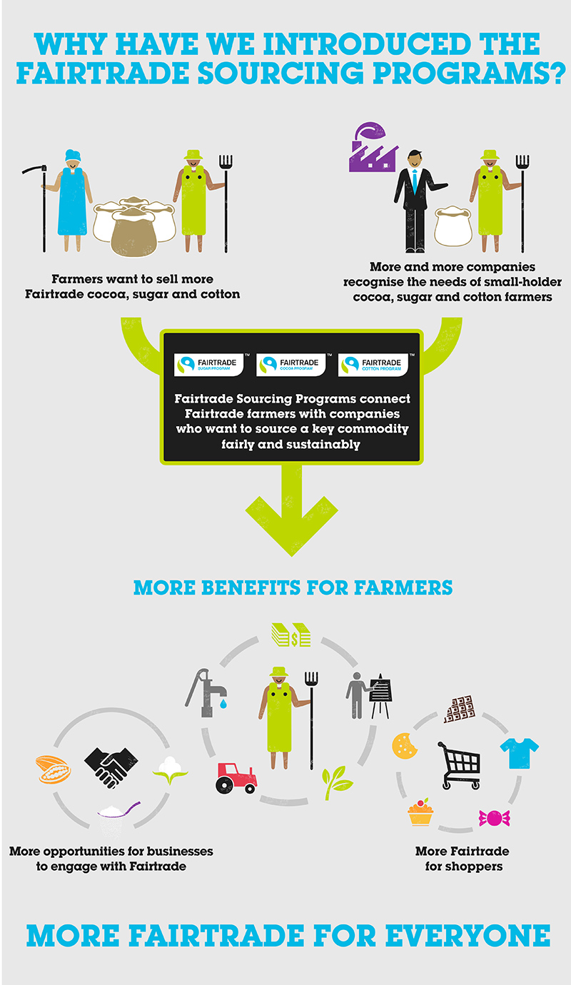 Op 27 jan 2014 lanceerde Fairtrade de ‘Fairtrade Sourcing Programs’. Harriet Lamb, de CEO van Fairtrade International, deed dat op de vakbeurs ‘International Sweets and Biscuits Fair’ in Keulen.